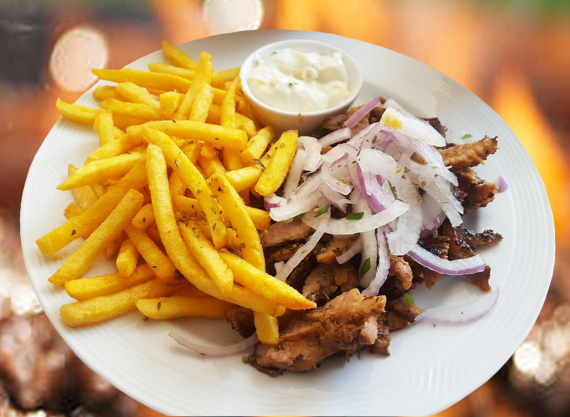 Taxi Teller mit Currywurst, Gyros, Pommes, Mayo